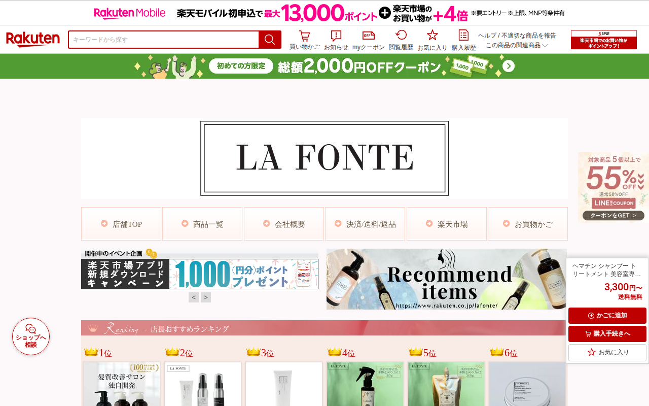このページはLAFONTE(ラフォンテ)のヘマチン配合シャンプー・トリートメント製品を販売する楽天市場の商品ページです。500mlボトルで3,300円から、送料無料で購入できます。ダメージ補修と髪質改善に特化した美容室専...