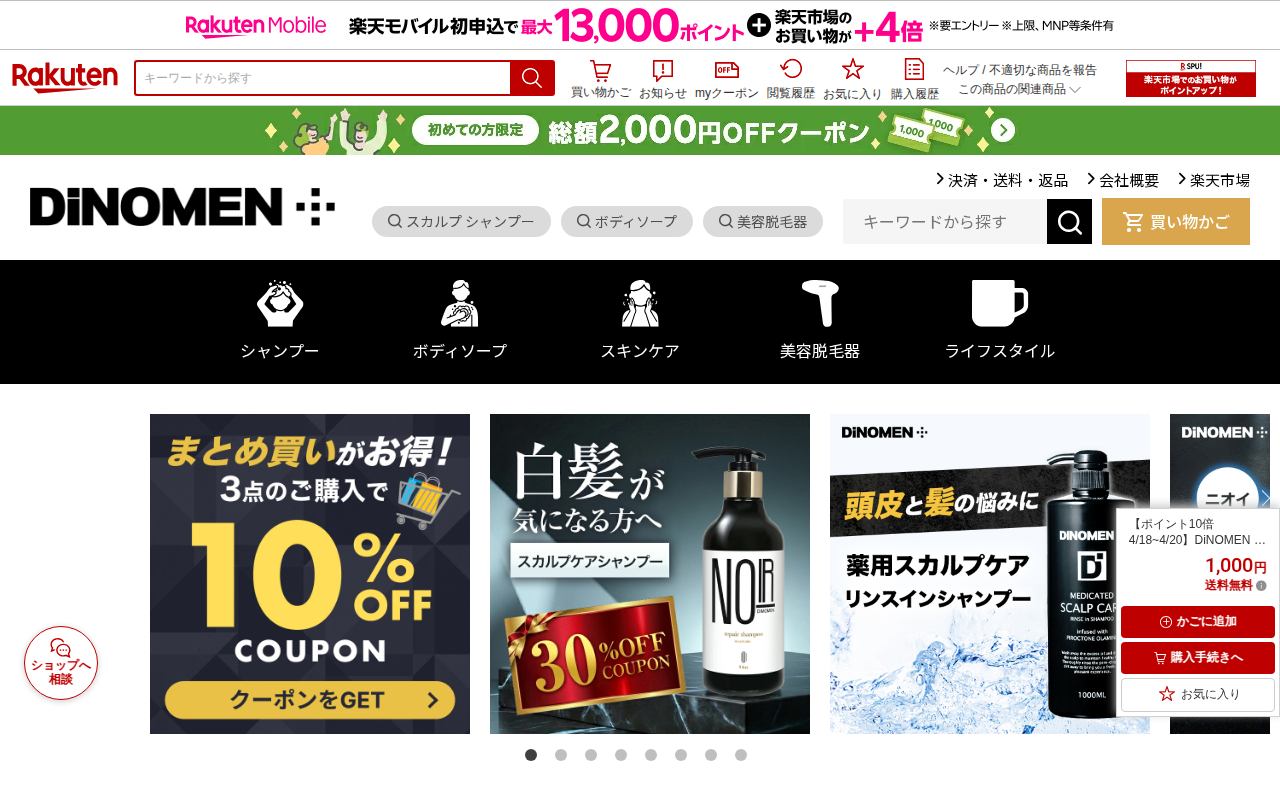 【楽天市場】【ポイント10倍 4/18~4/20】DiNOMEN 薬用 スカルプケア リンスイン シャンプー 200ml 育毛 養毛 頭皮 ケア フケ かゆみ 抜毛 薄毛 ニオイ 予防 ボタニカル 育毛 男性 メンズ お試し トライアル ゆうパケット △:DiNOMEN公式オンラインストア