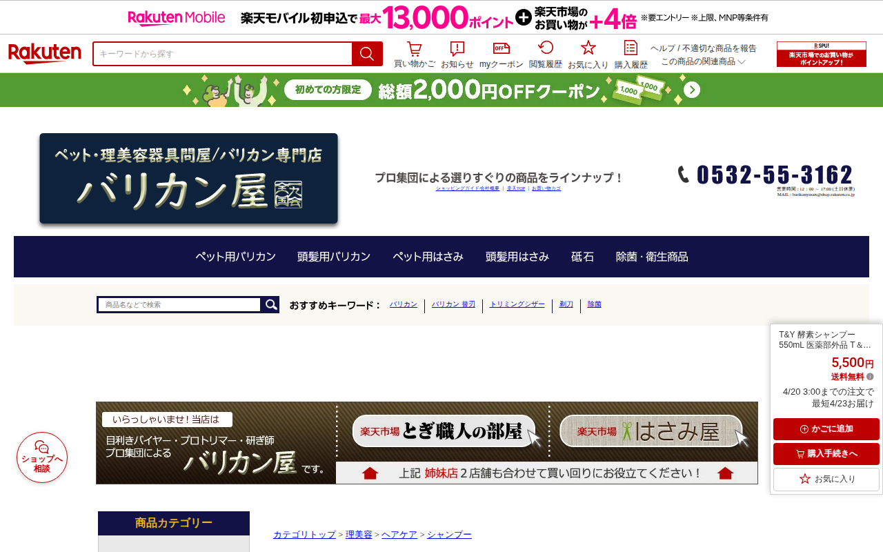 【楽天市場】T&Y 酵素シャンプー 550mL 医薬部外品 T&Y シャンプー 美容室専売 薄毛 頭皮 かゆみ ふけ 皮脂 毛髪 汗臭 汗の臭い 対策 メンズ 男性 女性 滝川:バリカン屋