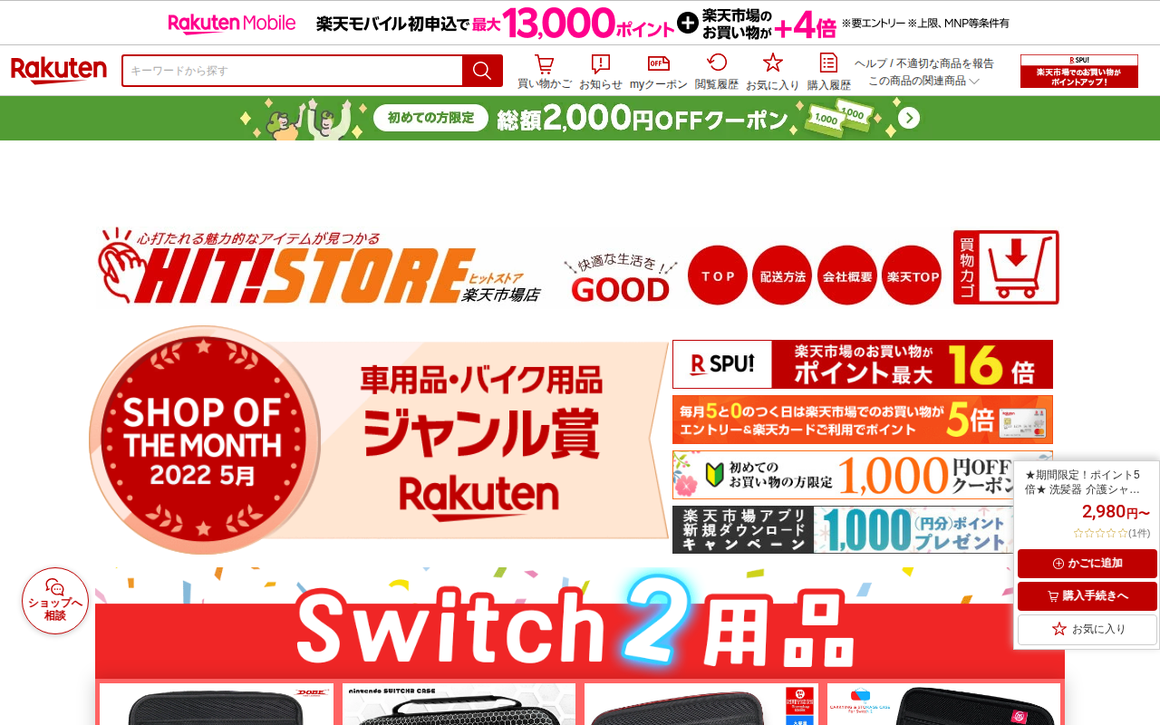 このページは、楽天市場で販売されている介護用シャンプー台の商品紹介ページです。2,980円から4,980円の価格帯で、寝たままの状態で髪を洗える製品が紹介されています。高齢者、子ども、妊婦、災害時など様々なシーンで活用で...