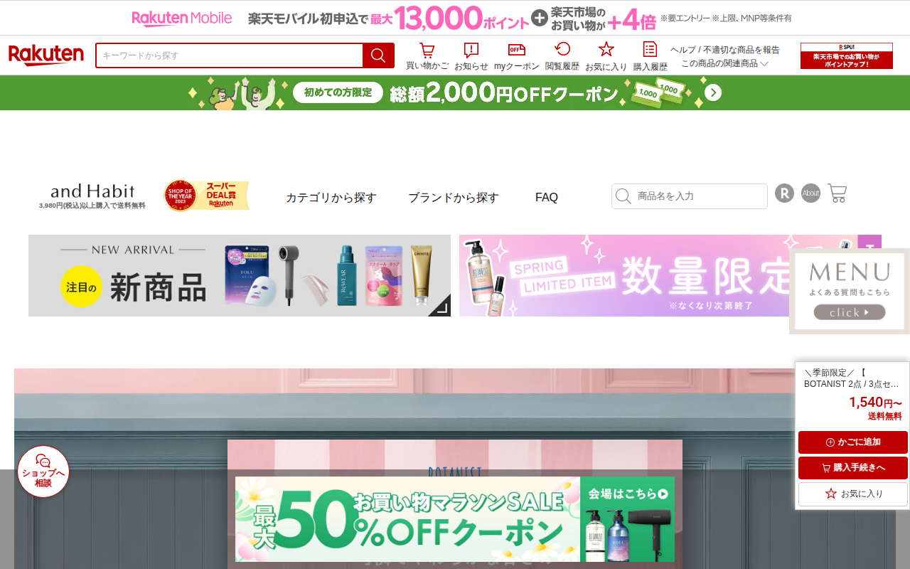 【楽天市場】\季節限定/ 【 BOTANIST 2点 / 3点セット】 《 サクラとバニラの香り 》 ボタニスト ボタニカル 期間限定 ダメージケア 潤い ツヤ髪 しっとり ダメージ カラー タンパク質 シリコンフリー ノンシリコン 男性 女性 頭皮 2025m:アンド ハビット