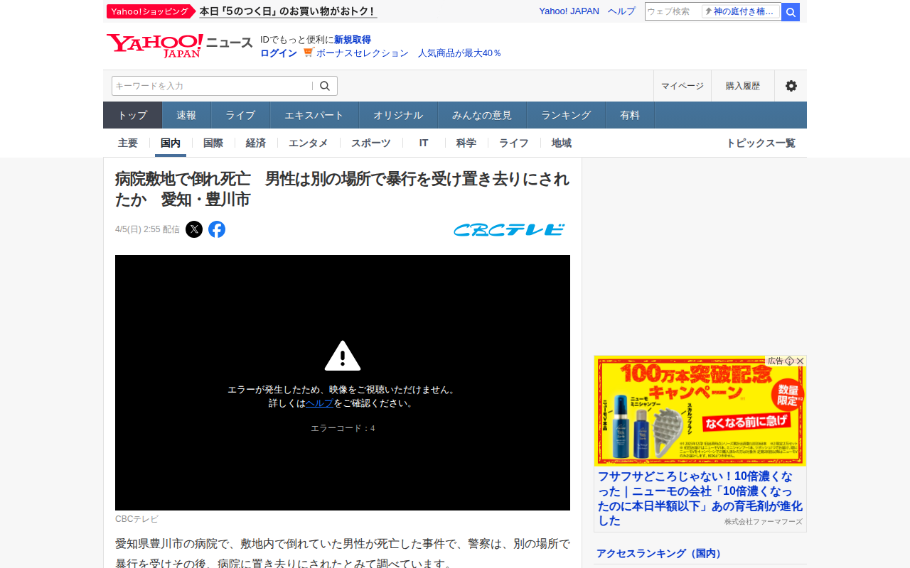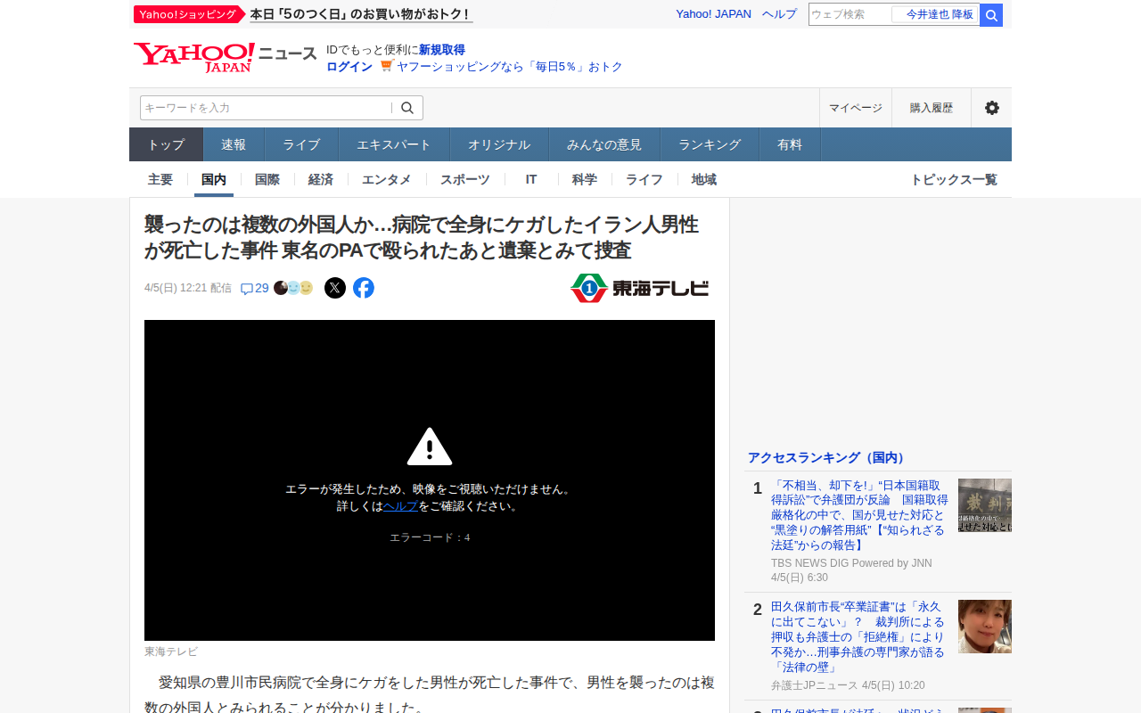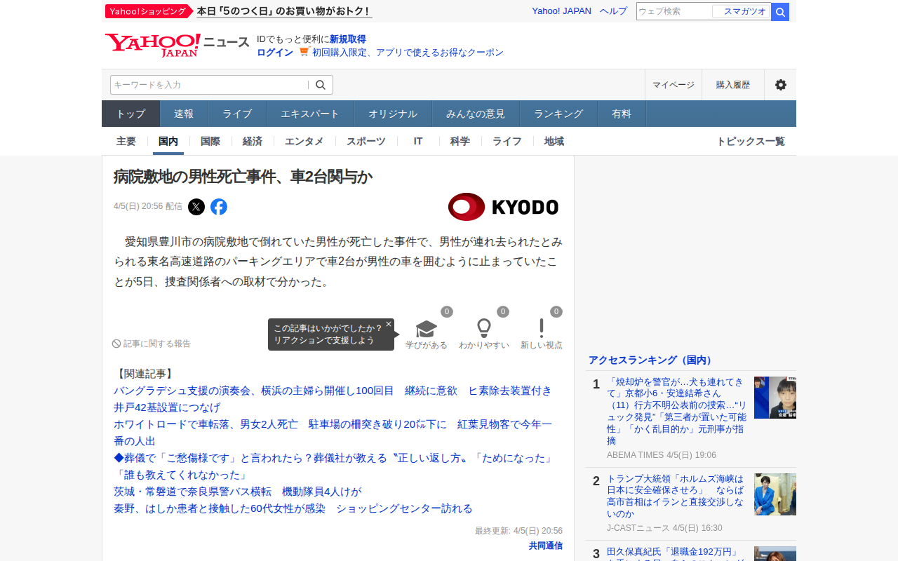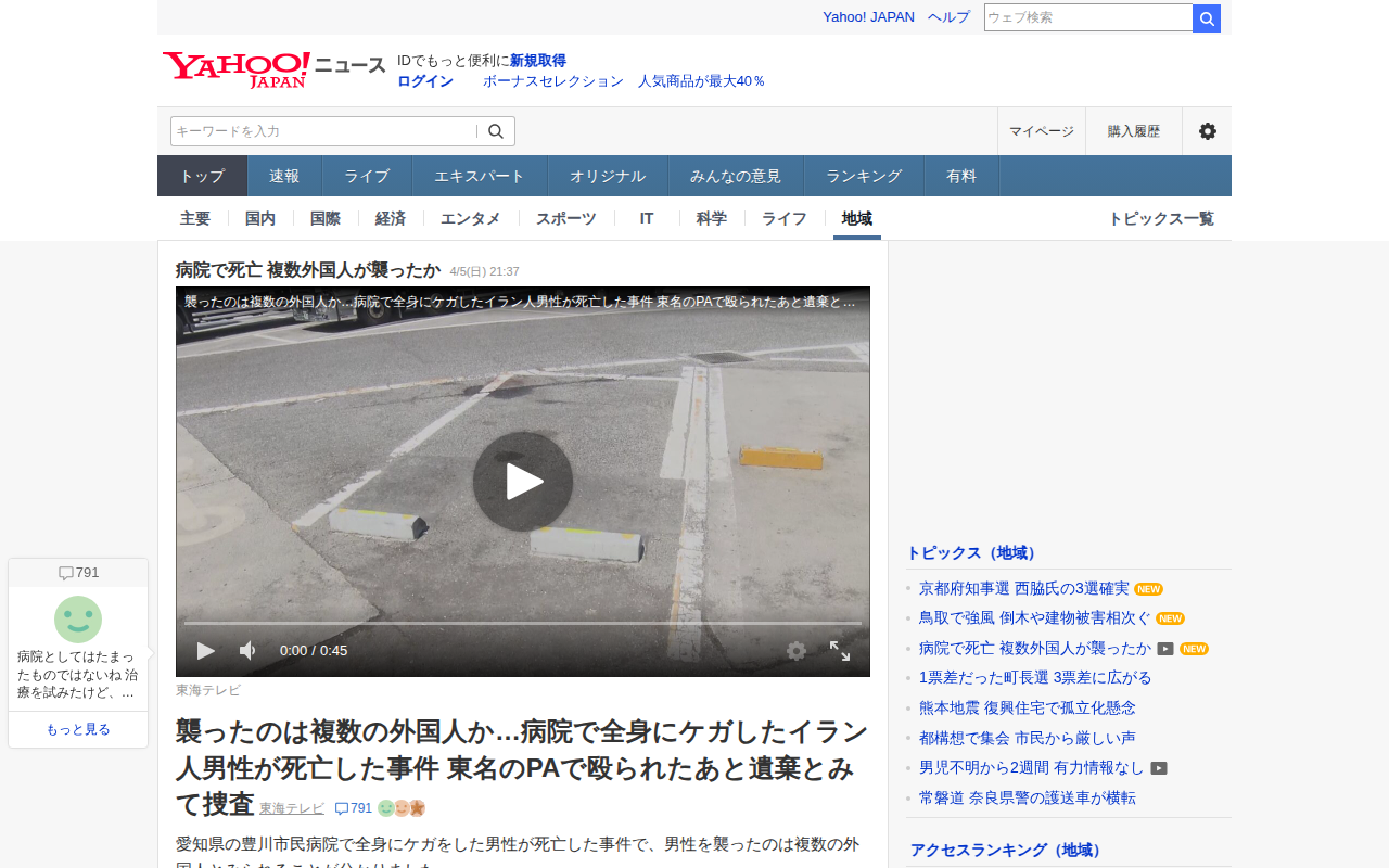 病院で死亡 複数外国人が襲ったか - Yahoo!ニュース