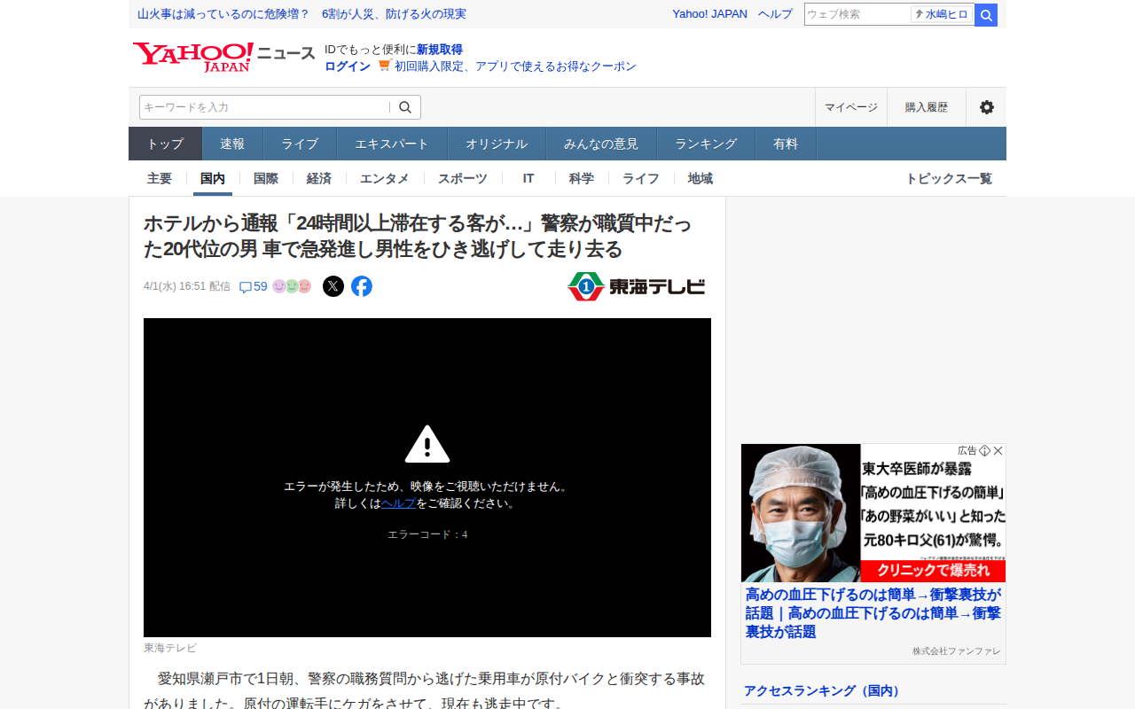 ホテルから通報「24時間以上滞在する客が…」警察が職質中だった20代位の男 車で急発進し男性をひき逃げして走り去る(東海テレビ) - Yahoo!ニュース