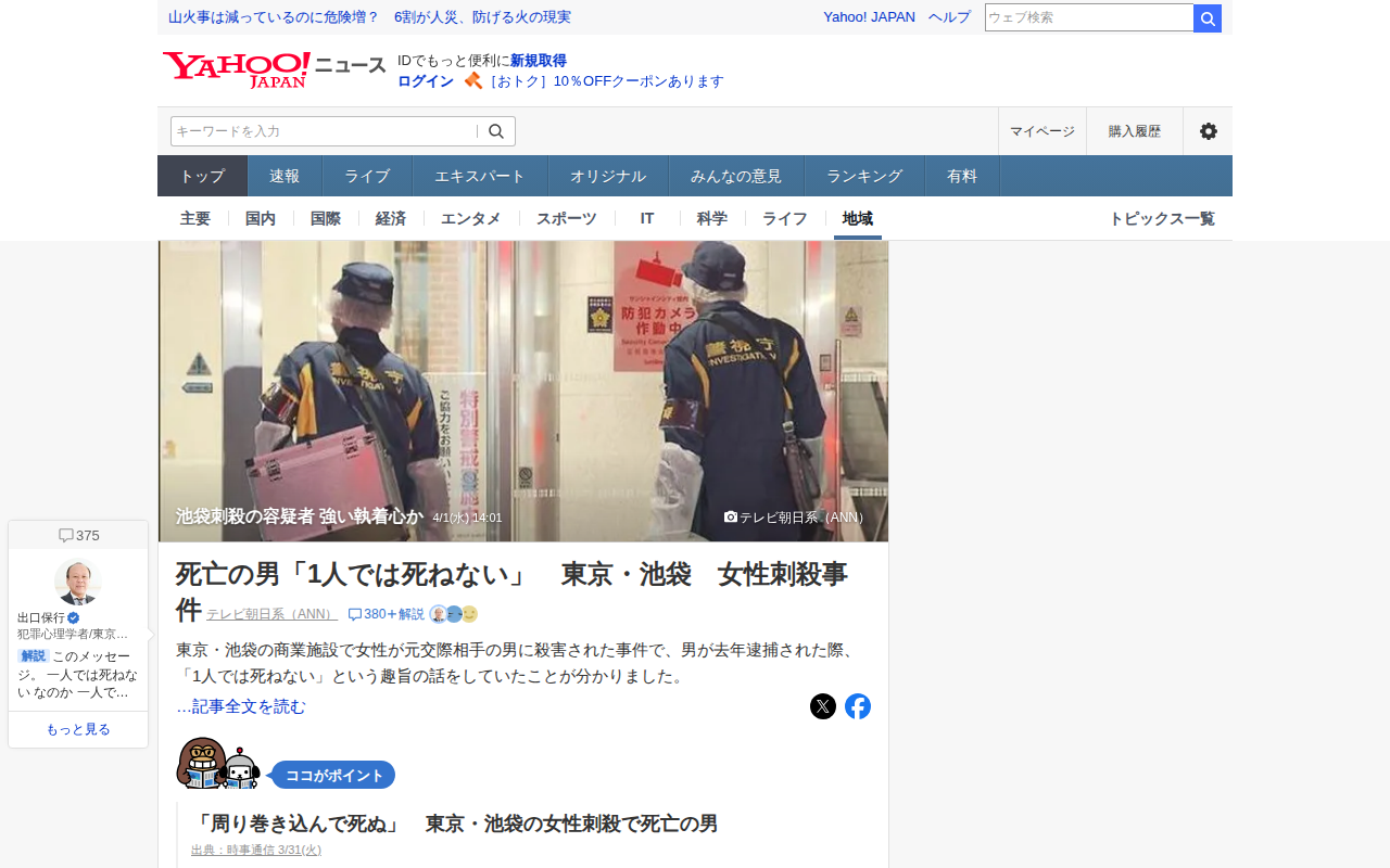 池袋刺殺の容疑者 強い執着心か - Yahoo!ニュース