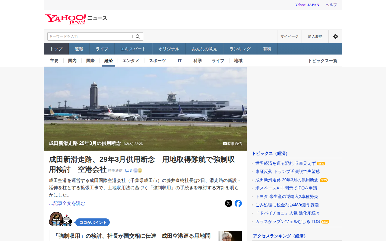成田新滑走路 29年3月の供用断念 - Yahoo!ニュース