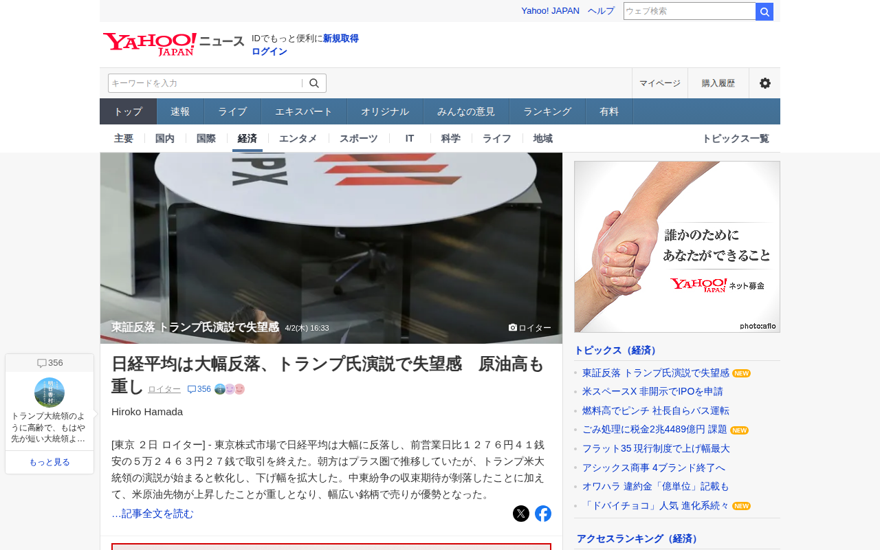 東証反落 トランプ氏演説で失望感 - Yahoo!ニュース