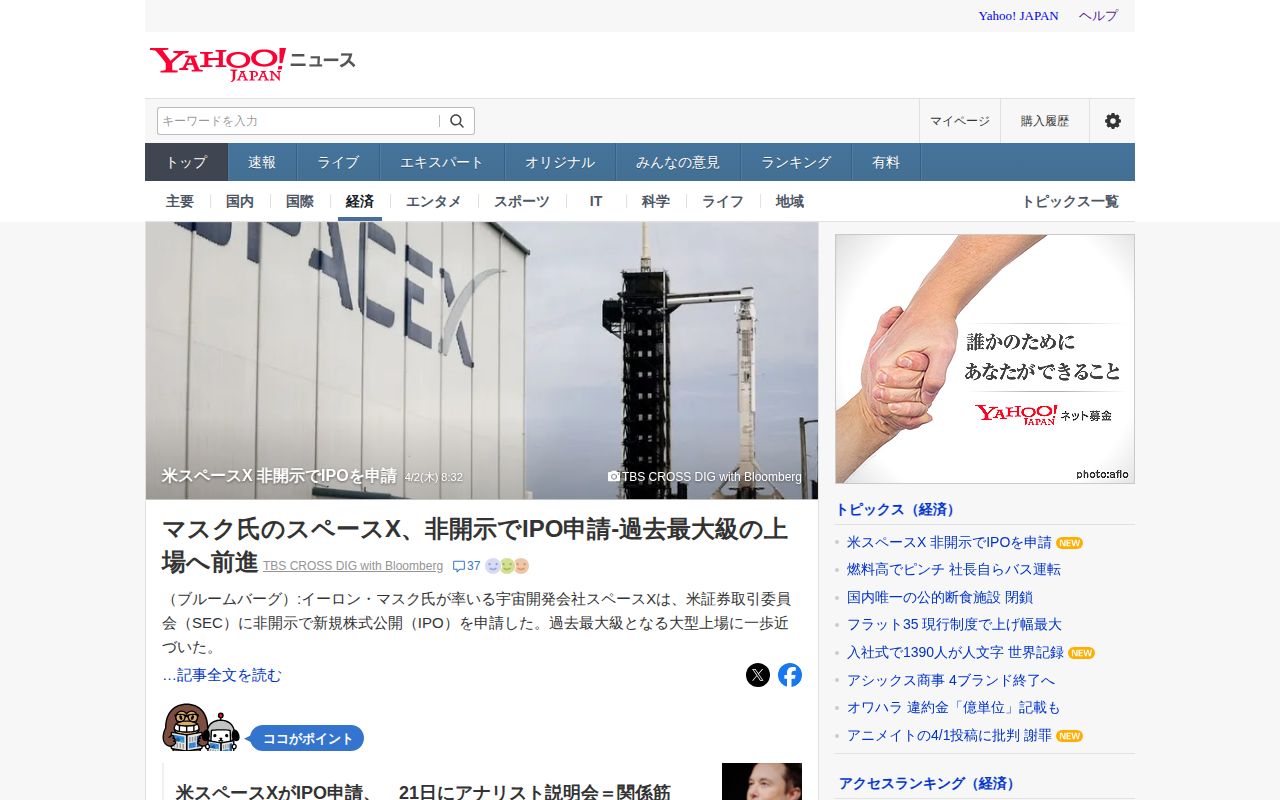 米スペースX 非開示でIPOを申請 - Yahoo!ニュース