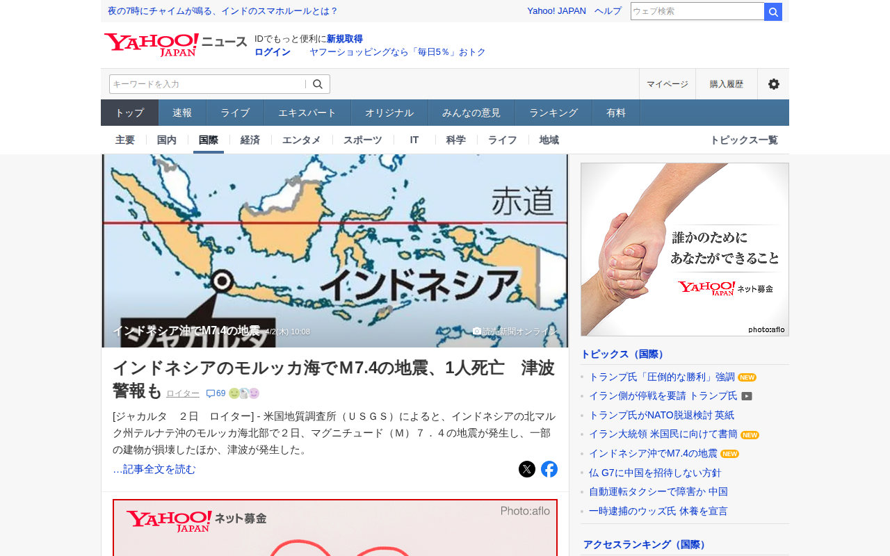 インドネシア沖でM7.4の地震 - Yahoo!ニュース