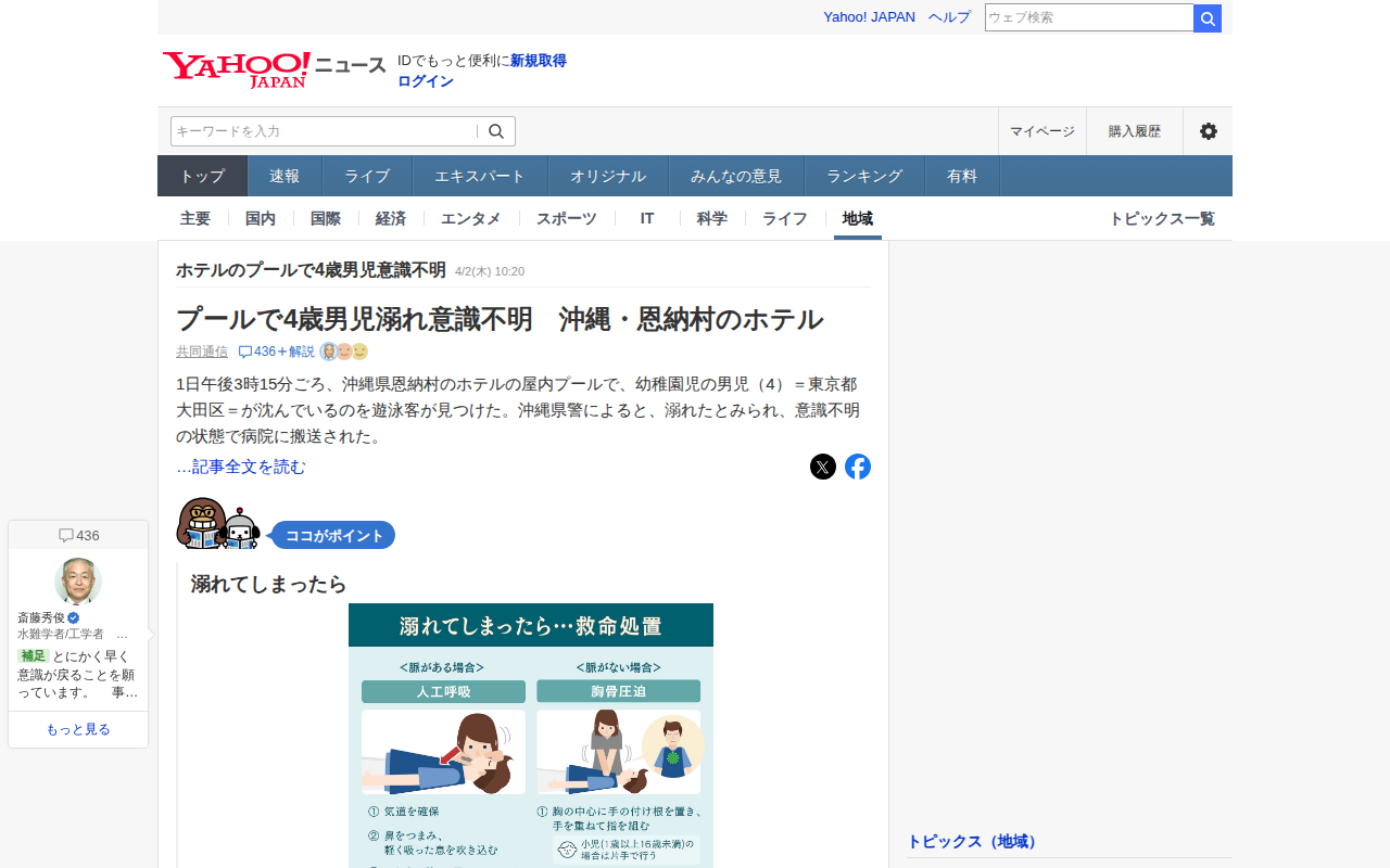 ホテルのプールで4歳男児意識不明 - Yahoo!ニュース