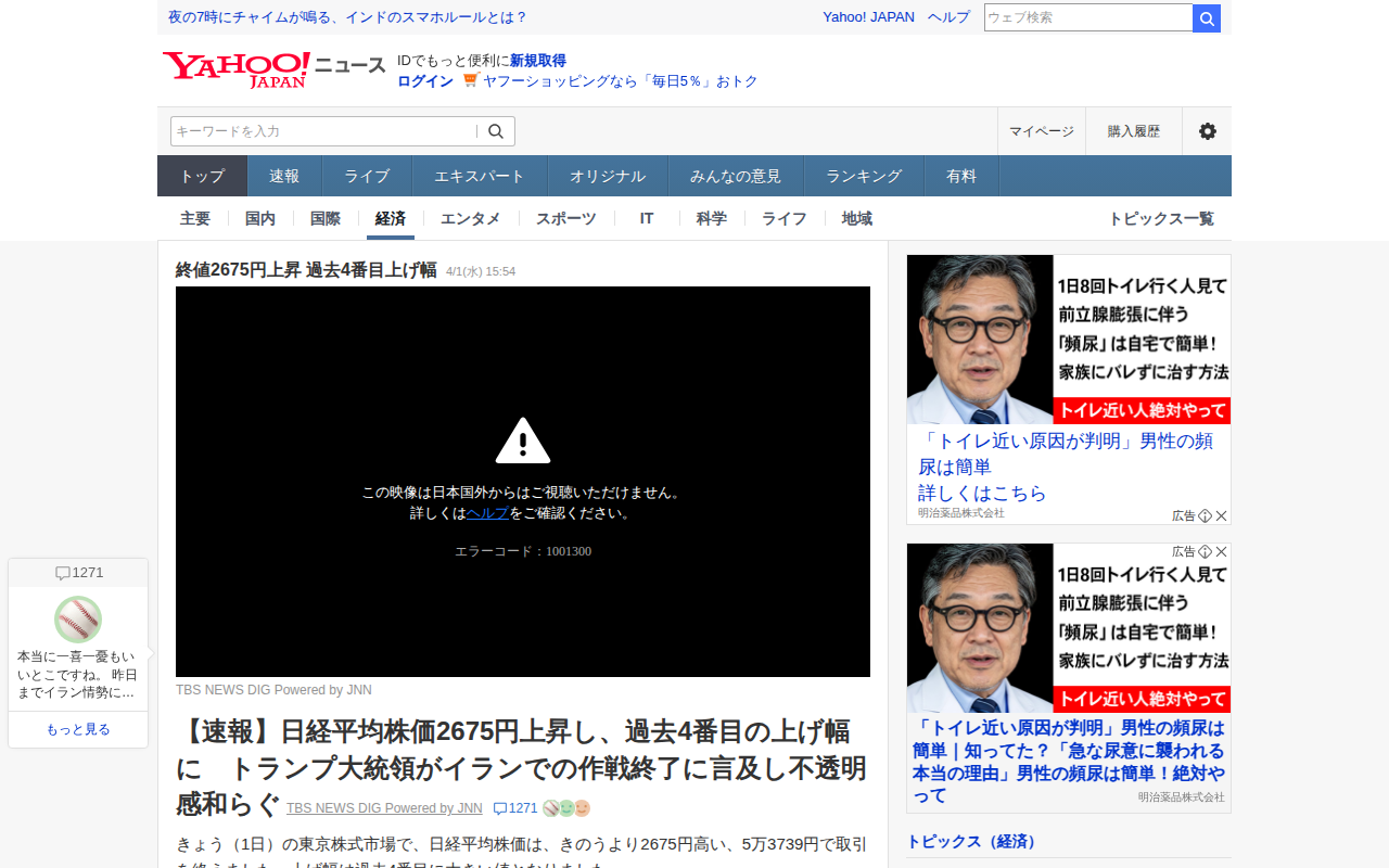 このページは、2025年4月1日の東京株式市場における日経平均株価の上昇を報じています。日経平均は前日比2675円高い5万3739円で取引を終え、過去4番目の上げ幅を記録しました。この上昇はトランプ大統領がイランでの作戦...