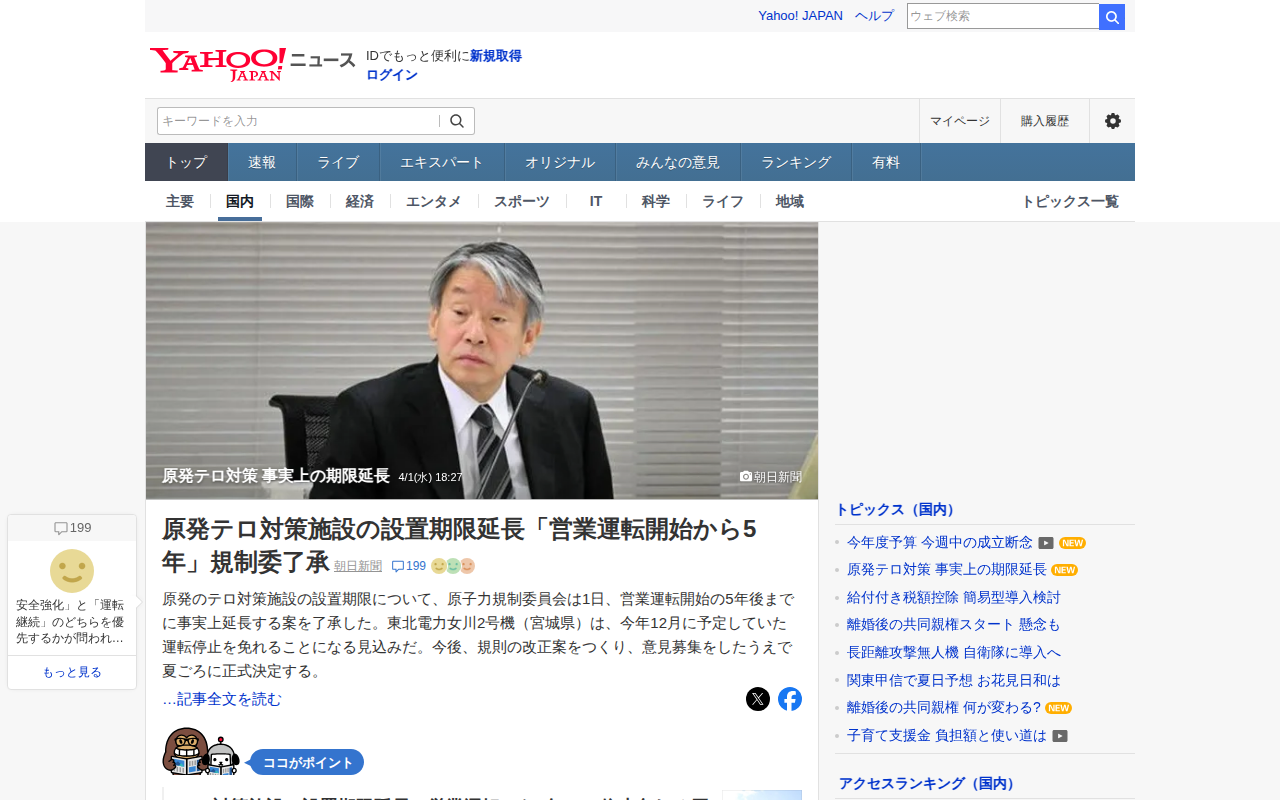 原発テロ対策 事実上の期限延長 - Yahoo!ニュース