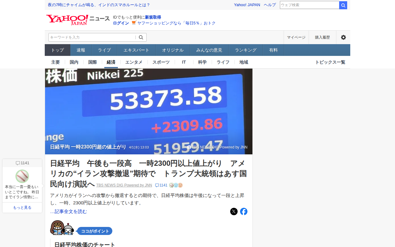 日経平均 一時2000円超の値上がり - Yahoo!ニュース