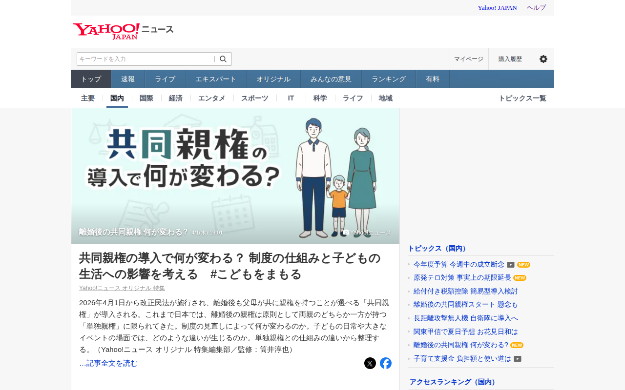 離婚後の共同親権スタート 懸念も - Yahoo!ニュース