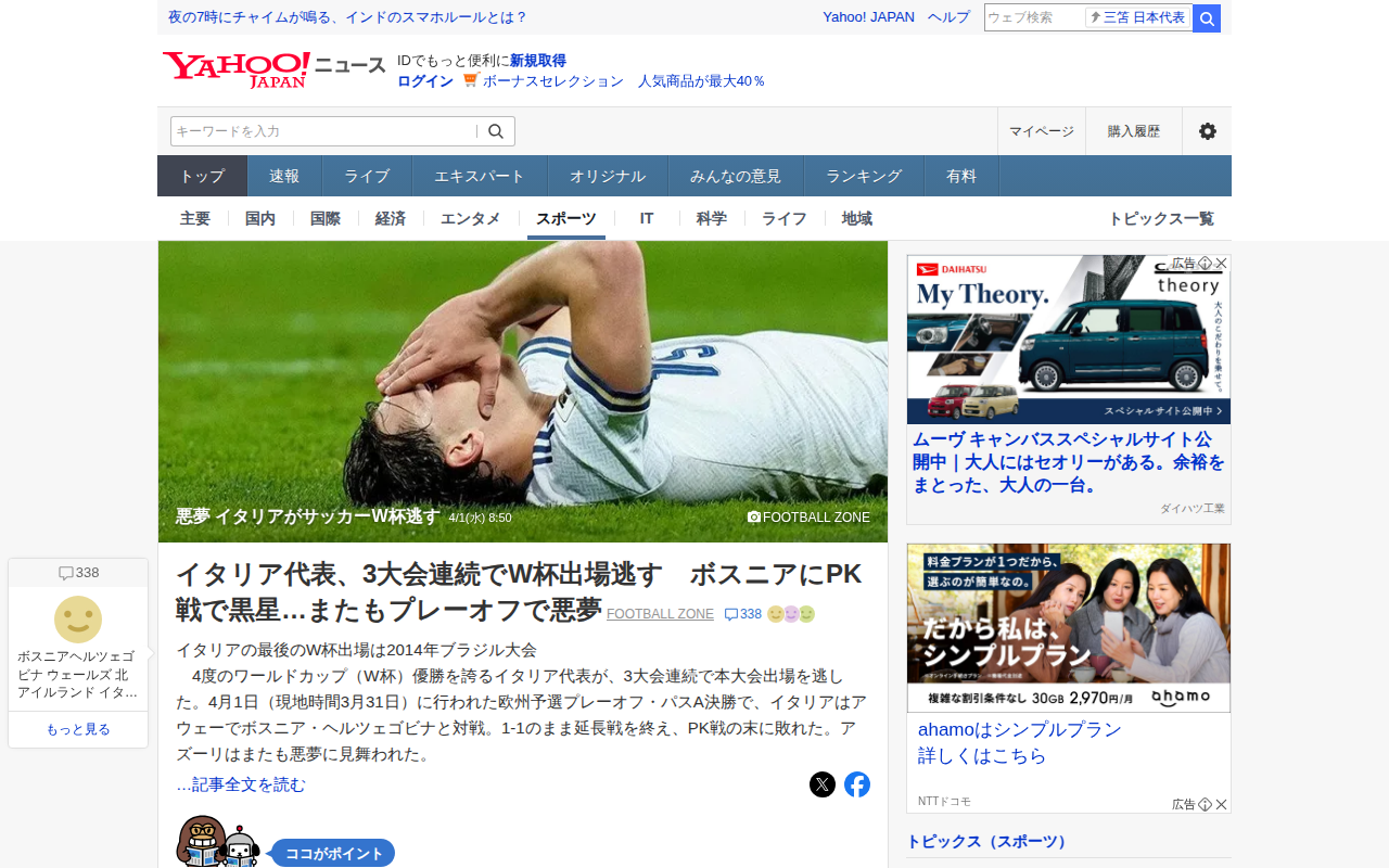 悪夢 イタリアがサッカーW杯逃す - Yahoo!ニュース