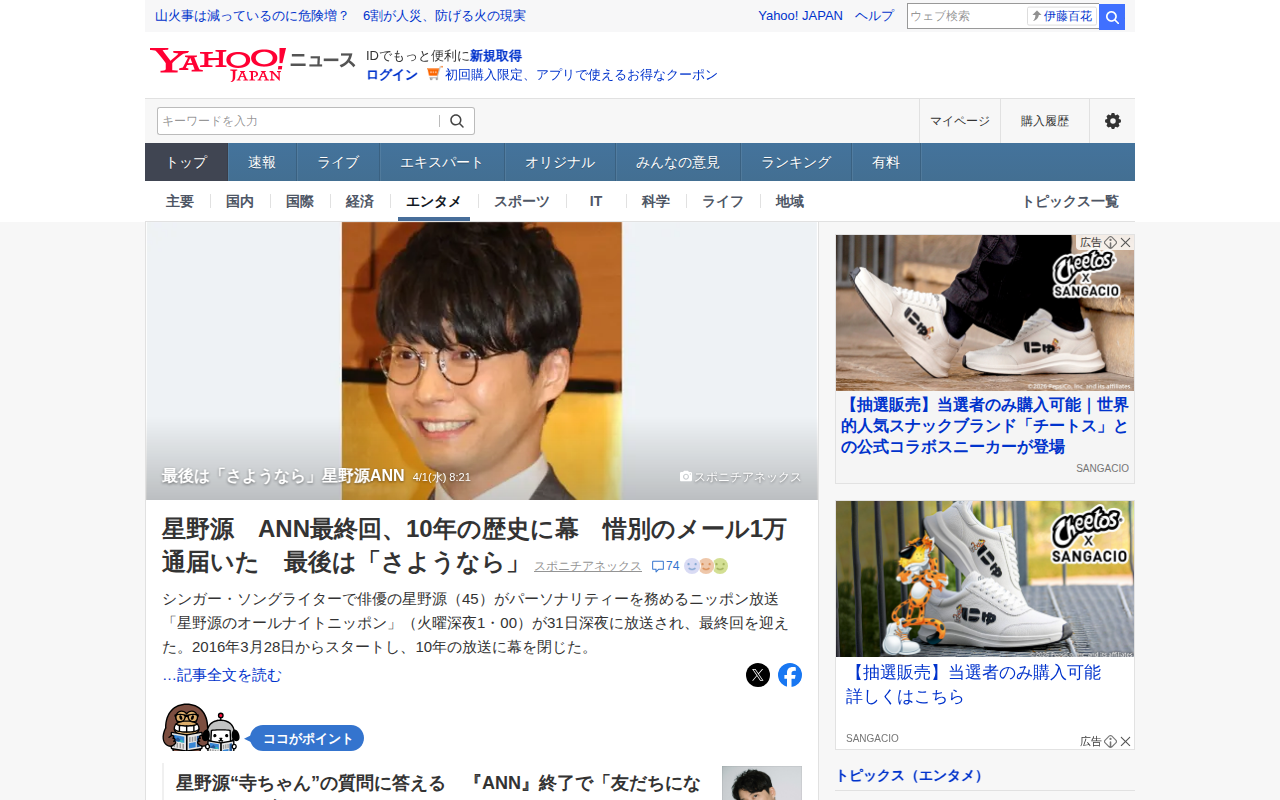 最後は「さようなら」星野源ANN - Yahoo!ニュース
