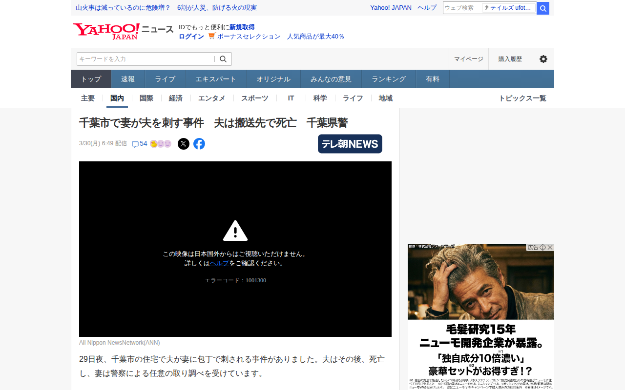 千葉市で妻が夫を刺す事件 夫は搬送先で死亡 千葉県警(テレビ朝日系(ANN)) - Yahoo!ニュース