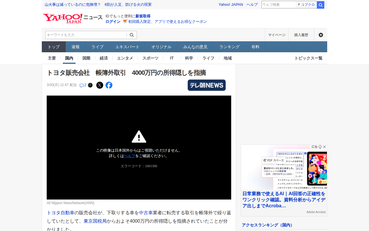 トヨタ販売会社 帳簿外取引 4000万円の所得隠しを指摘(テレビ朝日系(ANN)) - Yahoo!ニュース