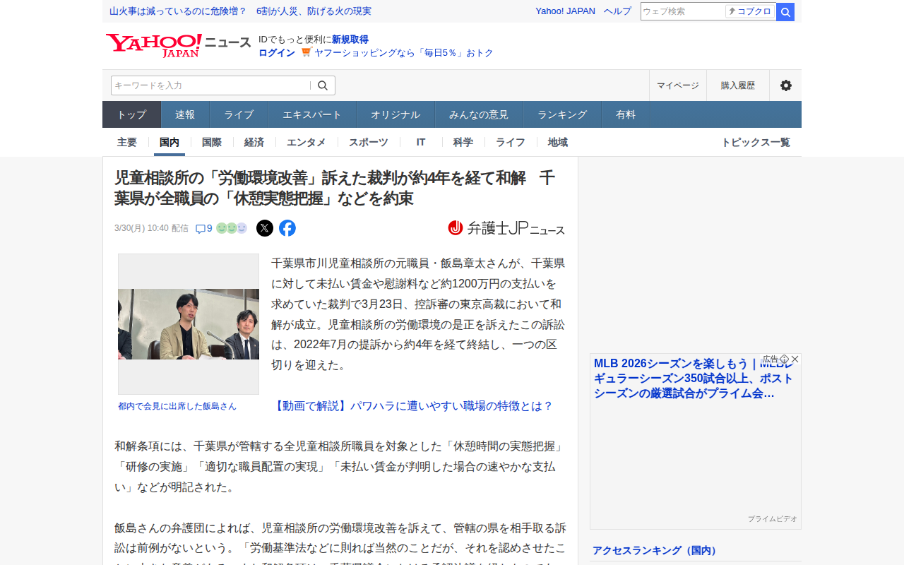 児童相談所の「労働環境改善」訴えた裁判が約4年を経て和解 千葉県が全職員の「休憩実態把握」などを約束(弁護士JPニュース) - Yahoo!ニュース