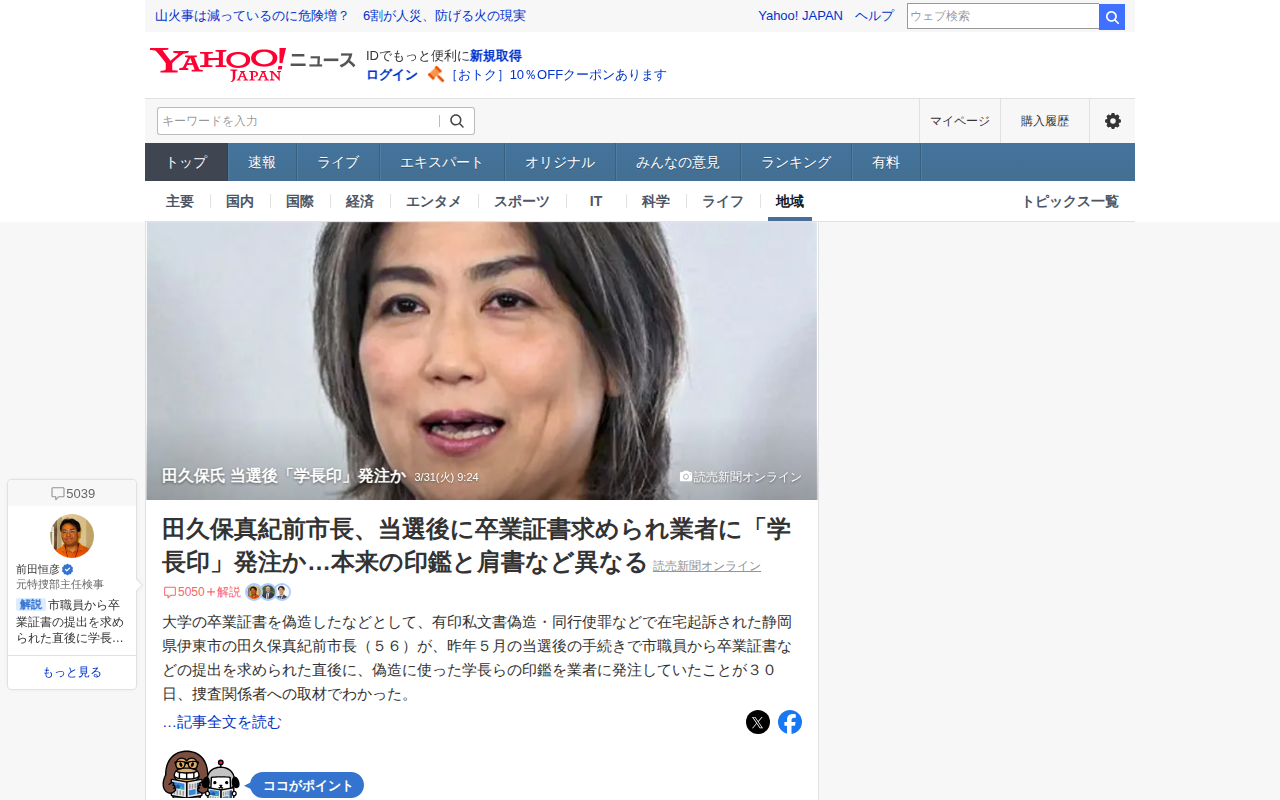 田久保氏 当選後「学長印」発注か - Yahoo!ニュース