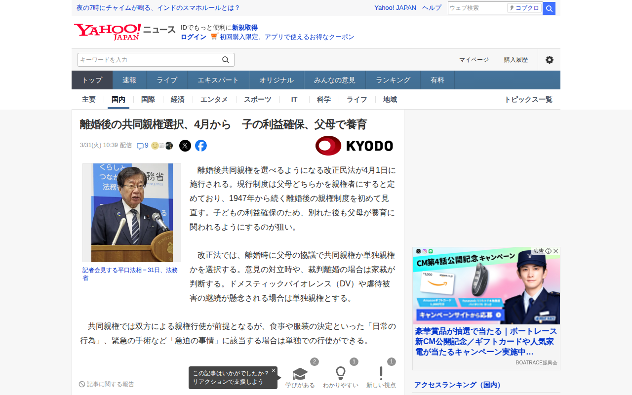 このページは、2024年4月1日から施行される改正民法により、離婚後に共同親権を選択できるようになることを報告しています。1947年から続く親権制度の初の見直しで、子どもの利益確保のため別れた後も両親が養育に関わることを...