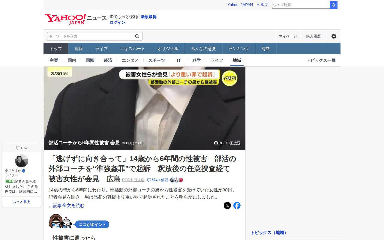 部活コーチから6年間性被害 会見 - Yahoo!ニュース