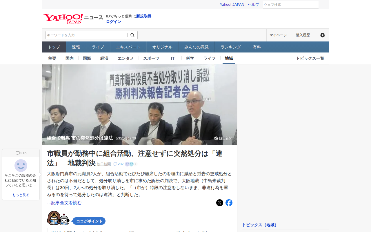 組合で離席 市の突然処分は違法 - Yahoo!ニュース