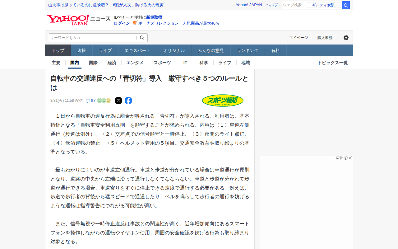 自転車の交通違反への「青切符」導入 厳守すべき5つのルールとは(スポーツ報知) - Yahoo!ニュース