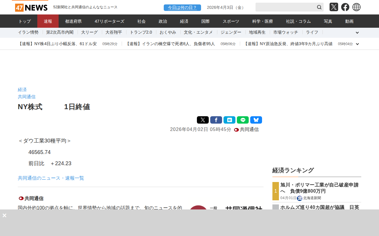 NY株式 1日終値 |47NEWS(よんななニュース)