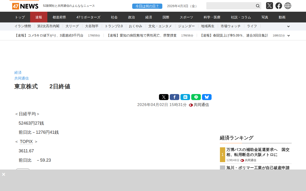 東京株式 2日終値 |47NEWS(よんななニュース)