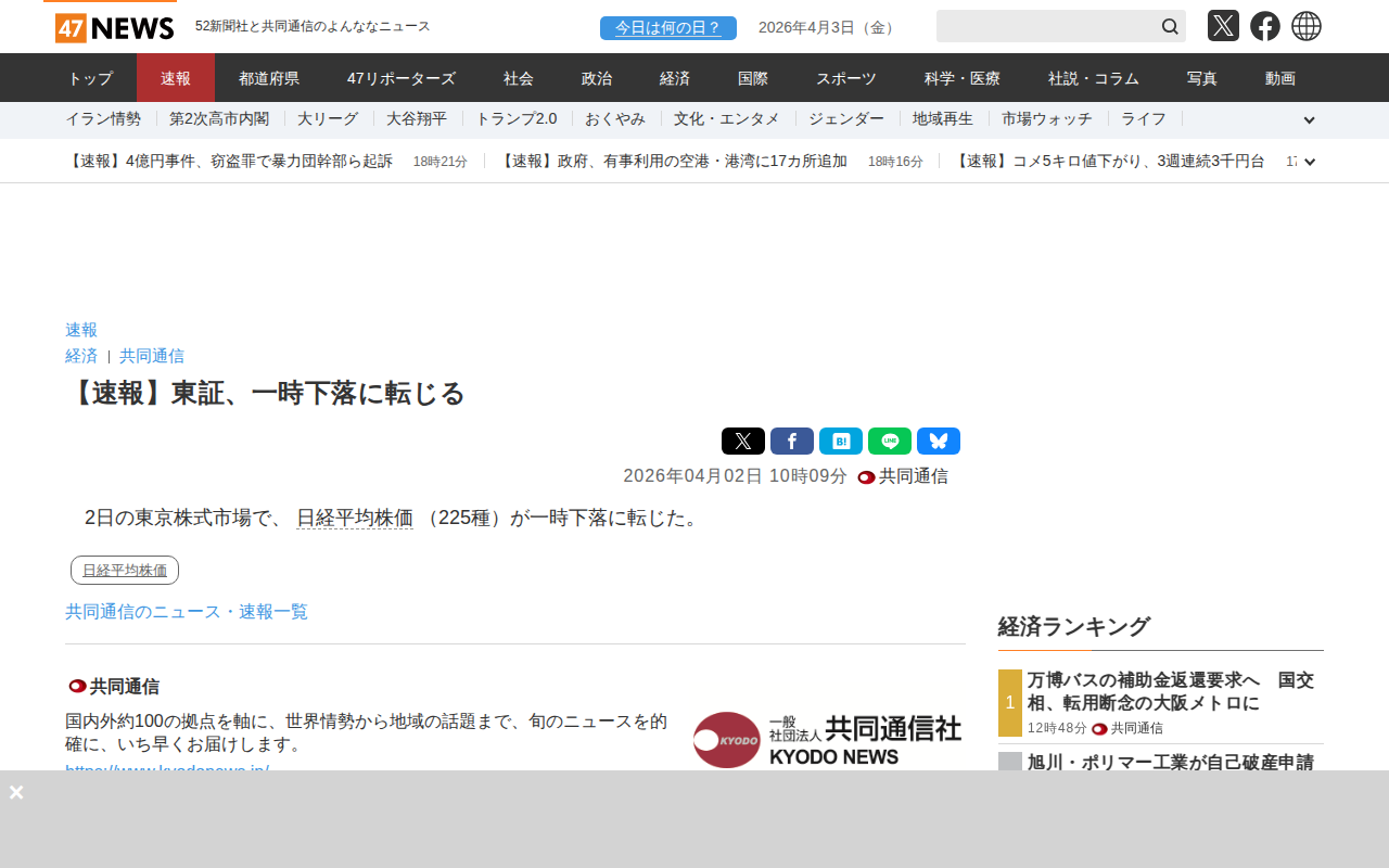【速報】東証、一時下落に転じる|47NEWS(よんななニュース)