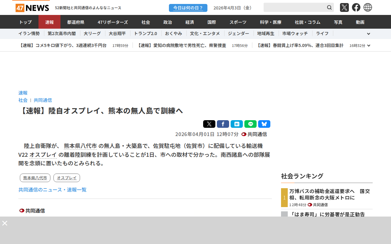 【速報】陸自オスプレイ、熊本の無人島で訓練へ|47NEWS(よんななニュース)