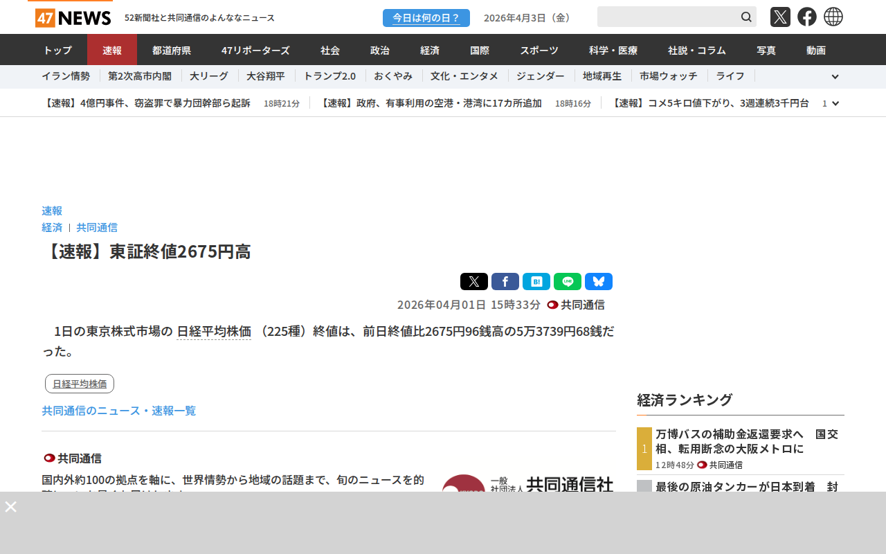 【速報】東証終値2675円高|47NEWS(よんななニュース)