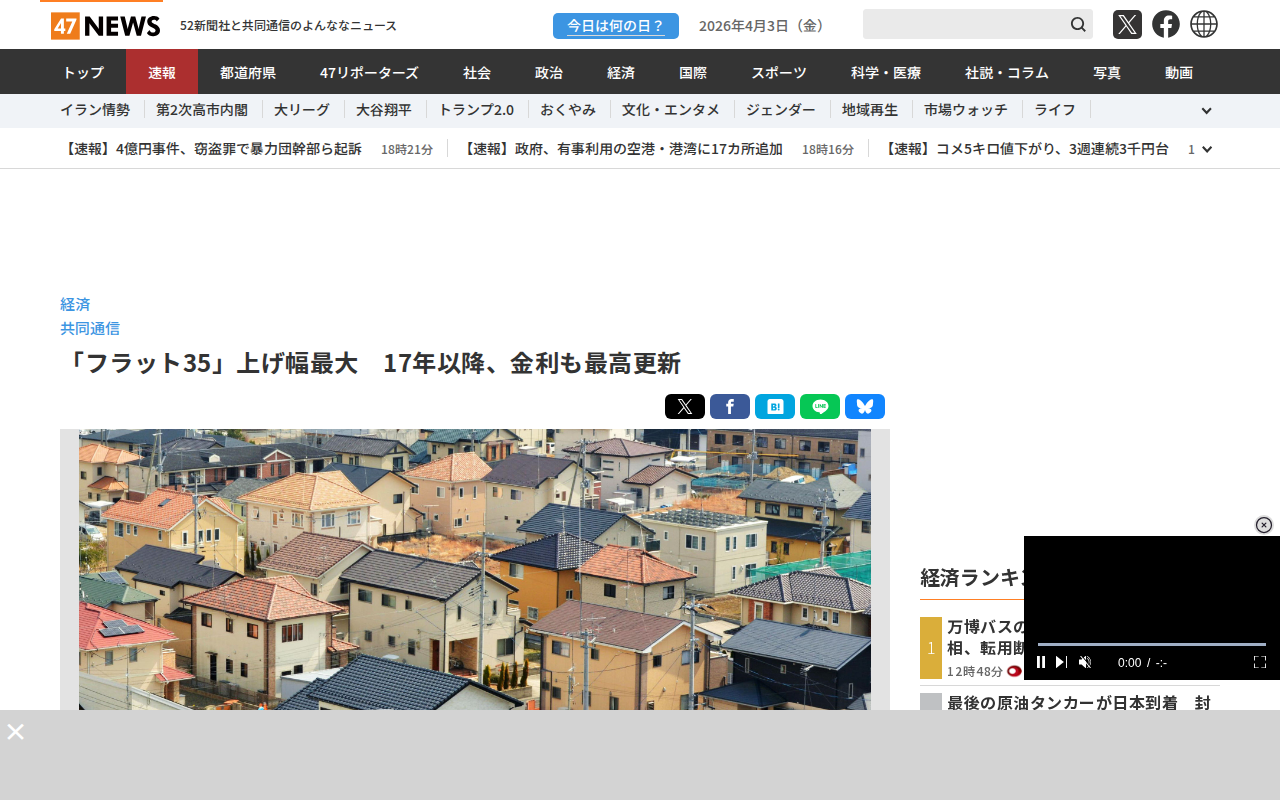 「フラット35」上げ幅最大 17年以降、金利も最高更新|47NEWS(よんななニュース)