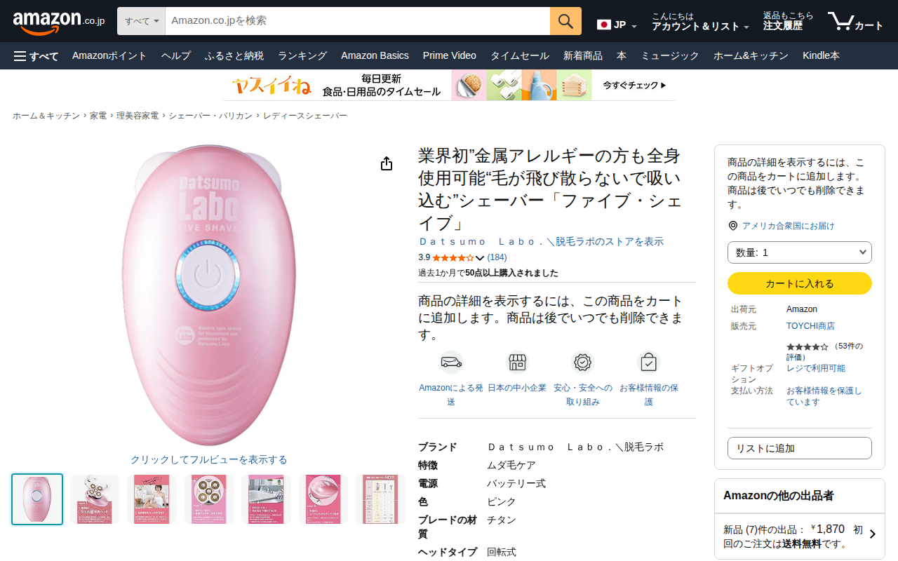このページは、脱毛ラボが販売する「ファイブ・シェイブ」というレディースシェーバーの商品ページです。業界初の金属アレルギー対応で、純チタン加工のブレードを採用しています。5つの超吸毛ヘッドにより剃った毛を吸い込むため、散ら...