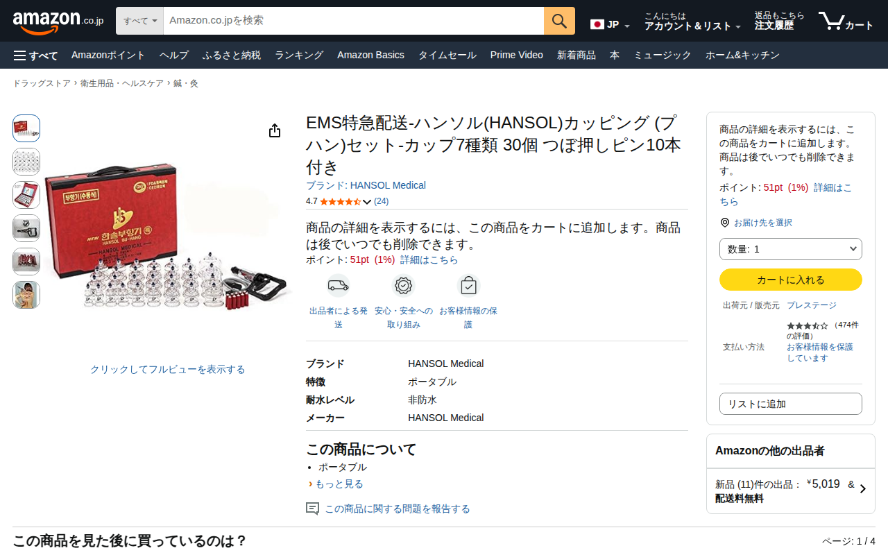 Amazon.co.jp: EMS特急配送-ハンソル(HANSOL)カッピング (プハン)セット-カップ7種類 30個 つぼ押しピン10本付き : ドラッグストア