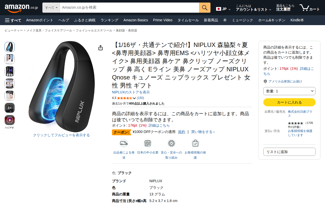 NIPLUX Qnose 鼻EMS 森梨夏 ノーズアップ美顔器