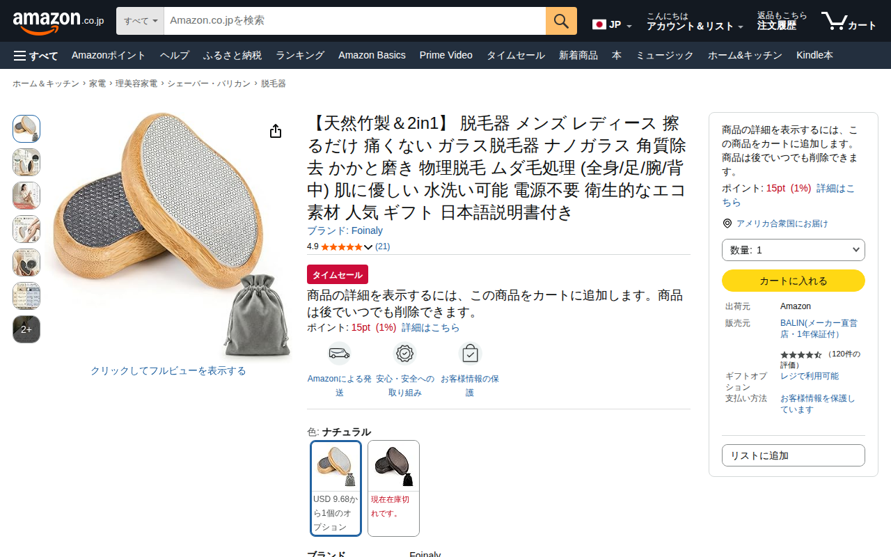 このページは、Foinaly製の天然竹製脱毛器の商品ページです。ナノガラス技術を採用した物理脱毛器で、擦るだけで痛みなくムダ毛を処理できます。男性・女性問わず全身に使用でき、電源不要で肌に優しいのが特徴です。2in1設計...