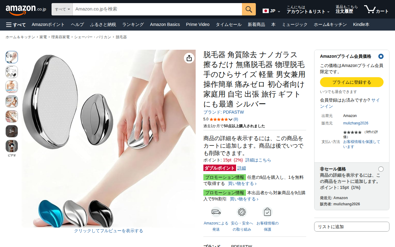 このページはAmazonで販売されている脱毛器の商品ページです。PDFASTWブランドのナノガラス脱毛器で、最新のナノ技術を採用し、化学成分ゼロで痛みなくムダ毛を除去できます。軽く円を描くようにこするだけで使用でき、ワッ...