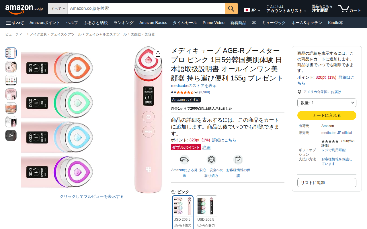 medicube メディキューブ AGE-Rブースタープロ ピンク 155g