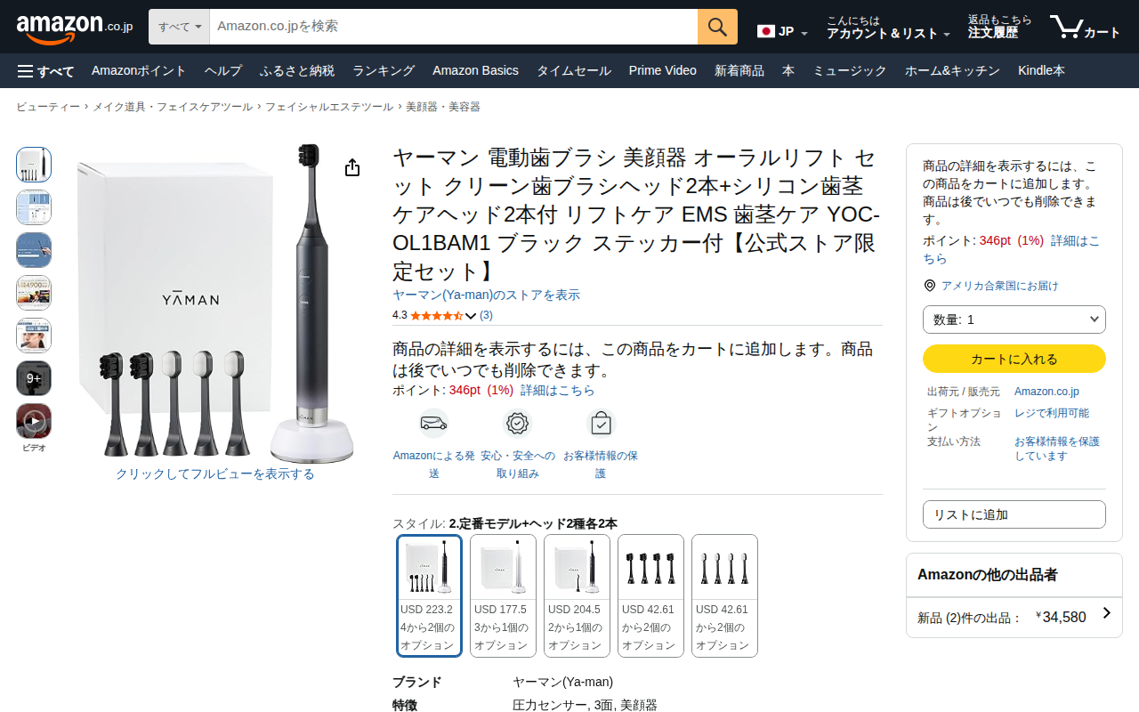 Amazon.co.jp: ヤーマン 電動歯ブラシ 美顔器 オーラルリフト セット クリーン歯ブラシヘッド2本+シリコン歯茎ケアヘッド2本付 リフトケア EMS 歯茎ケア YOC-OL1BAM1 ブラック ステッカー付【公式ストア限定セット】 : ドラッグストア