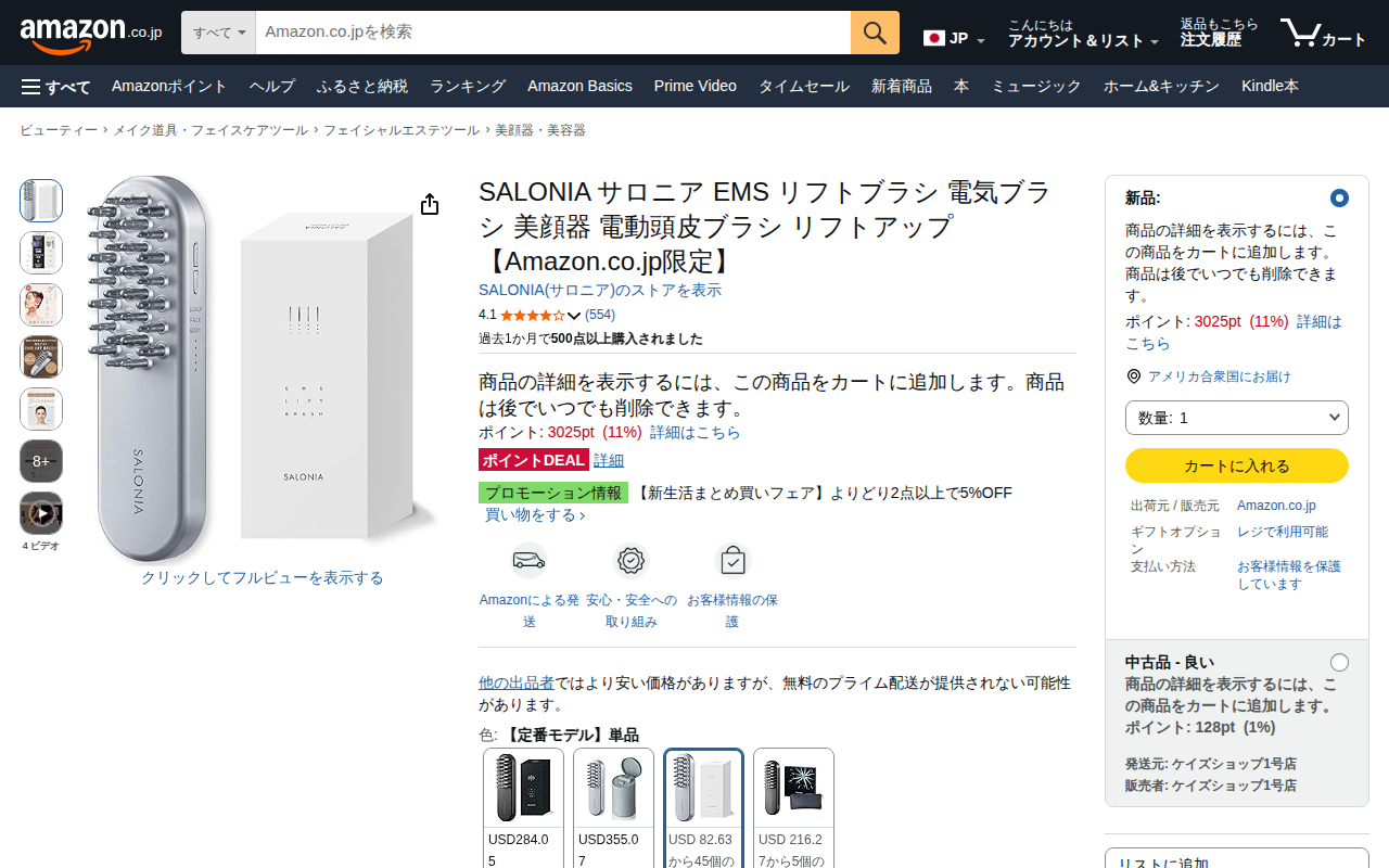このページはAmazon.co.jpで販売されているSALONIA EMSリフトブラシの商品ページです。独自のEMS周波で筋肉を刺激し、頭皮・表情筋・ボディなど全身に使用できる美顔器・電動ブラシです。バッテリー式で、価格...