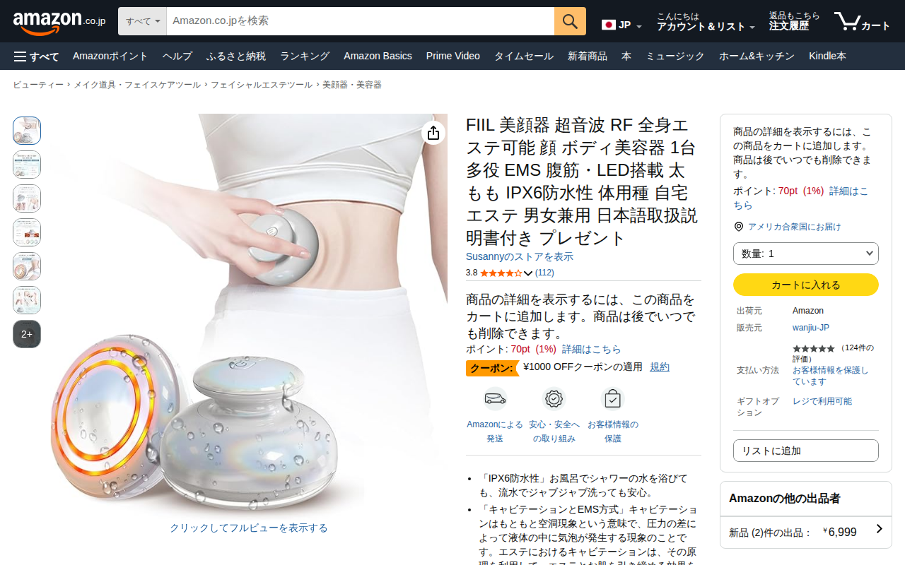 このページはAmazonで販売されているFIIL製の美顔器・美容器の商品ページです。超音波、RF、EMS、LEDを搭載した多機能美容器で、顔だけでなく全身のエステが可能です。キャビテーション技術とEMS方式により、肌の引...
