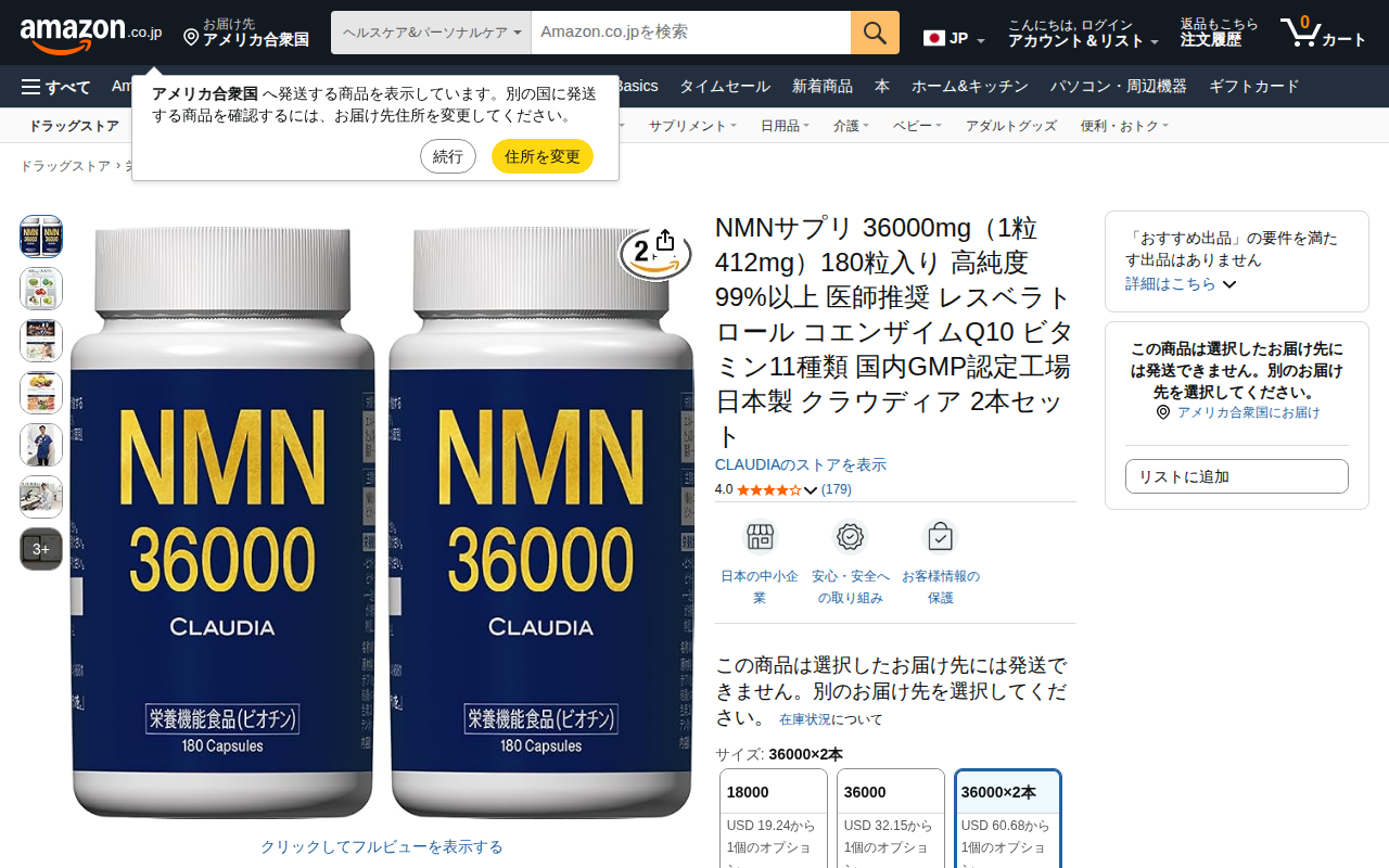 Amazon | NMNサプリ 36000mg(1粒412mg)180粒入り 高純度99%以上 医師推奨 レスベラトロール コエンザイムQ10 ビタミン11種類 国内GMP認定工場 日本製 クラウディア 2本セット | CLAUDIA | サプリメント・ビタミン