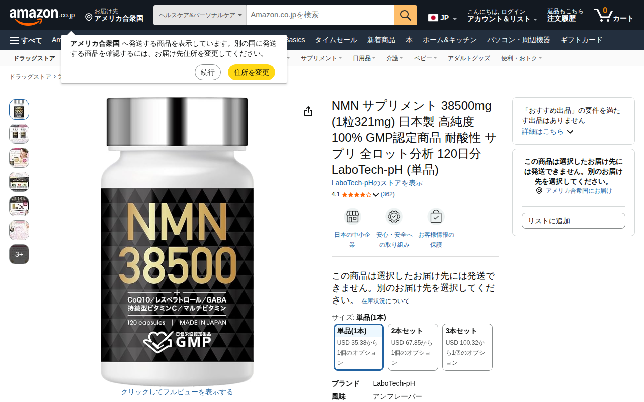 このページは、LaboTech-pHのNMNサプリメント商品を紹介しています。1本に38,500mgの高純度NMN100%を配合し、1日1粒で321mgを摂取できます。GMP認定工場での国内製造で、厚生労働省登録の第三者...