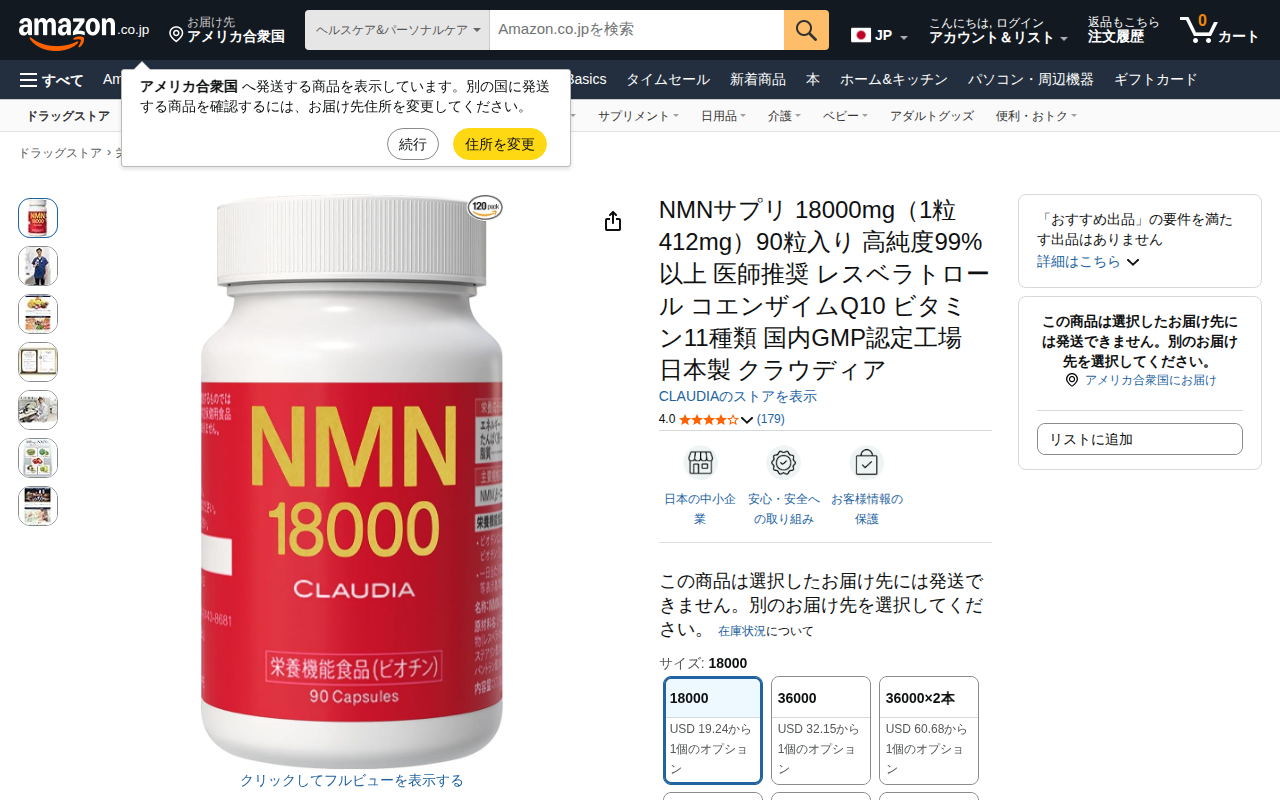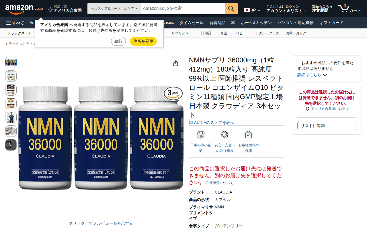 このページはAmazonで販売されているCLAUDIA製のNMNサプリメント3本セットの商品紹介ページです。1粒412mg、180粒入りで高純度99%以上のNMNを配合しており、医師推奨の1日400mgが2粒で摂取できま...