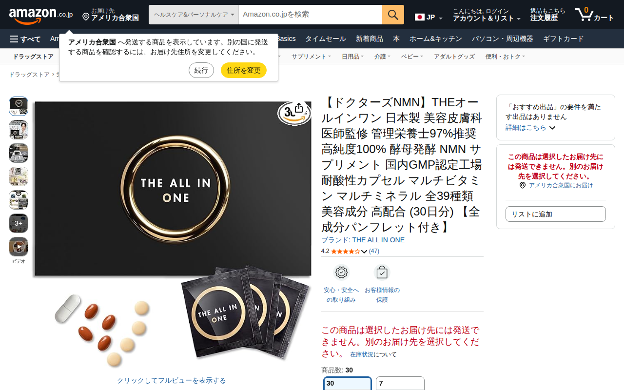 このページは、Amazon で販売されているドクターズNMN「THEオールインワン」というサプリメント商品の紹介ページです。日本製で高純度100%のNMN を1箱に9000mg 配合し、美容皮膚科医師監修、管理栄養士97...