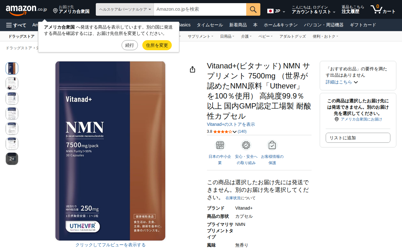 Amazon | Vitanad+(ビタナッド) NMN サプリメント 7500mg (世界が認めたNMN原料「Uthever」を100%使用) 高純度99.9%以上 国内GMP認定工場製 耐酸性カプセル | Vitanad+ | B3