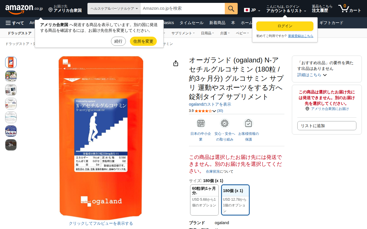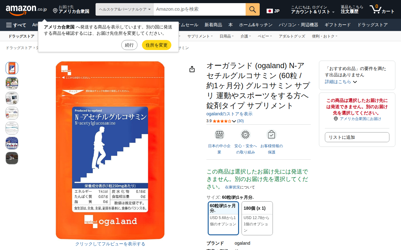 Amazon | オーガランド (ogaland) N-アセチルグルコサミン (180粒 / 約3ヶ月分) グルコサミン サプリ 運動やスポーツをする方へ 錠剤タイプ サプリメント | ogaland | グルコサミン