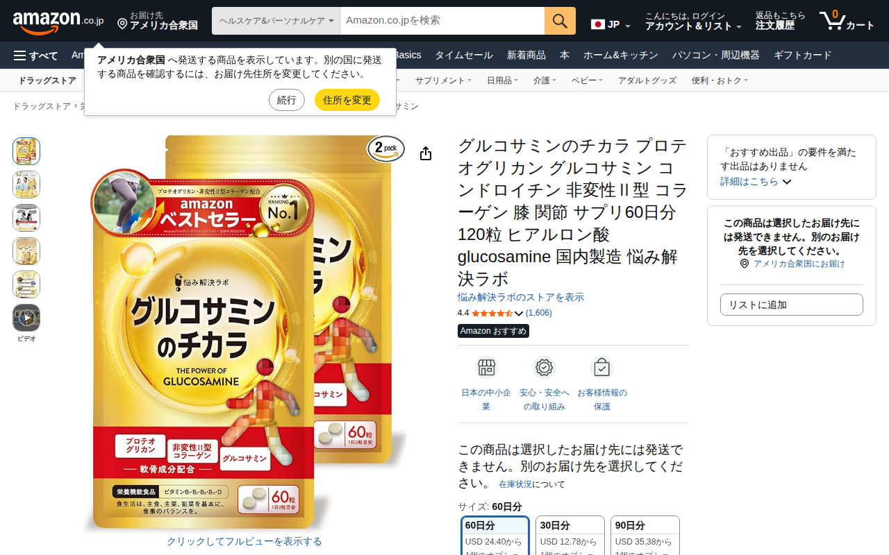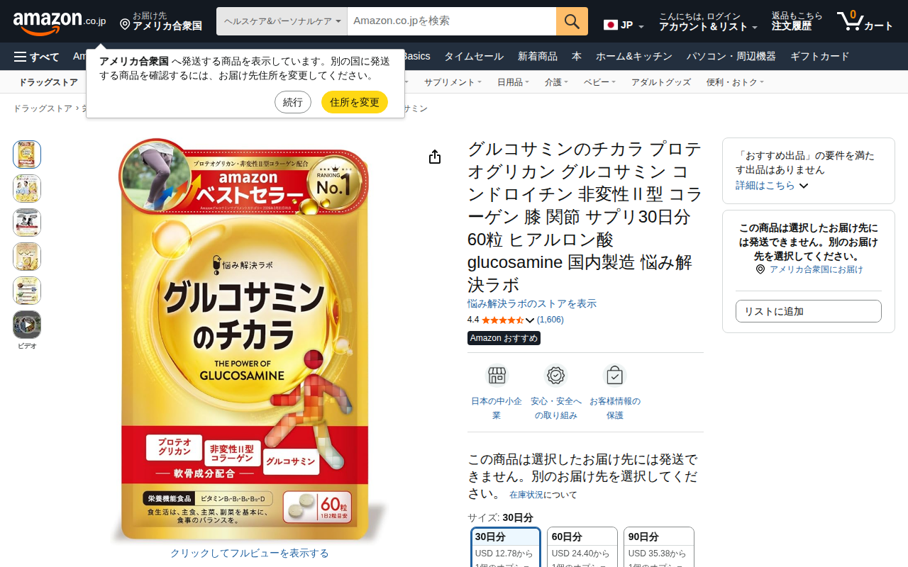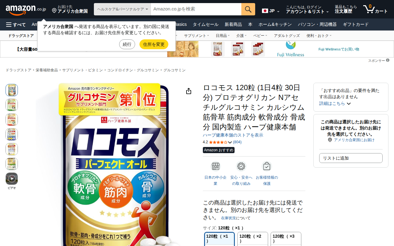 このページは、Amazonで販売されている「悩み解決ラボ グルコサミン プロテオグリカン 非変性Ⅱ型コラーゲン 60粒」という関節・骨の健康をサポートするサプリメントの商品ページです。グルコサミン、プロテオグリカン、コン...