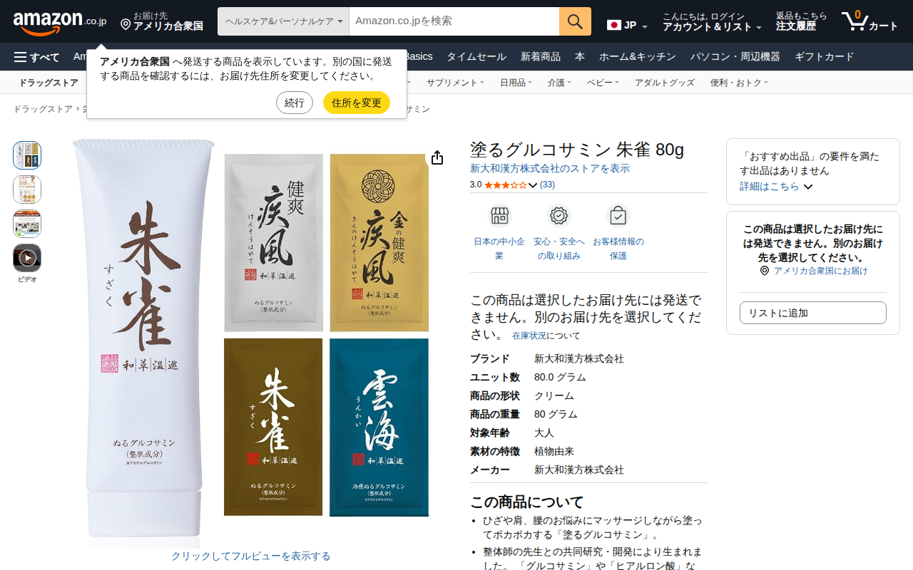 Amazon | 塗るグルコサミン 朱雀 80g | 新大和漢方株式会社 | グルコサミン